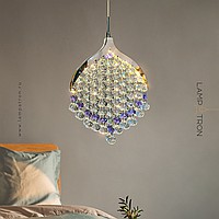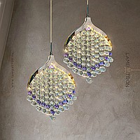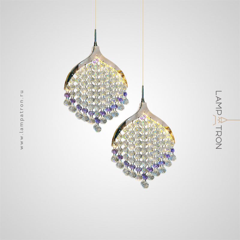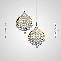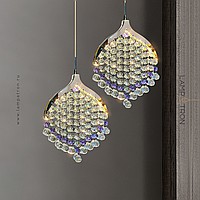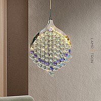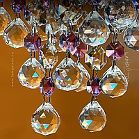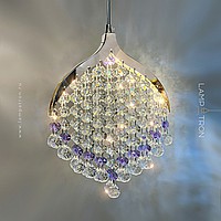 Pendant LED light with crystal pendants made of transparent and purple beads