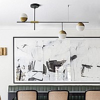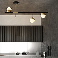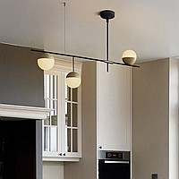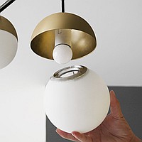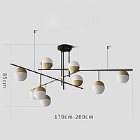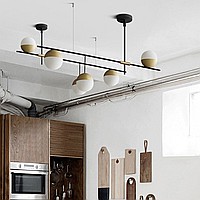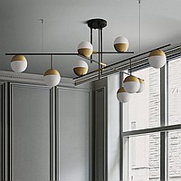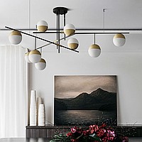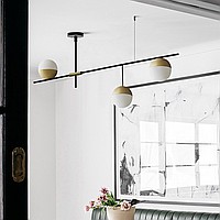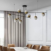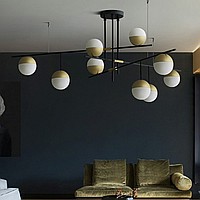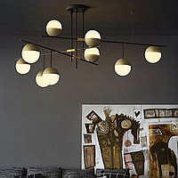 Stylish light installation with the 3rd or 9th spherical ceiling on rotary rods and string suspension.