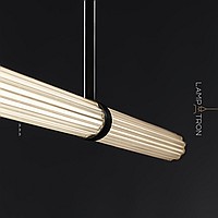 A series of slatted LED luminaires with an elongated cylindrical body made of embossed glass