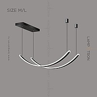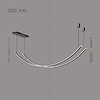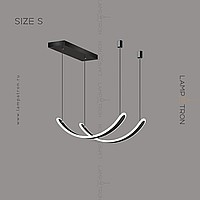 A series of suspended LED lamps with two elongated curved shades with rounded edges