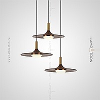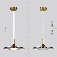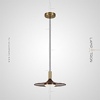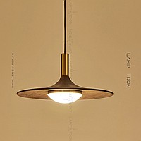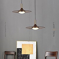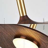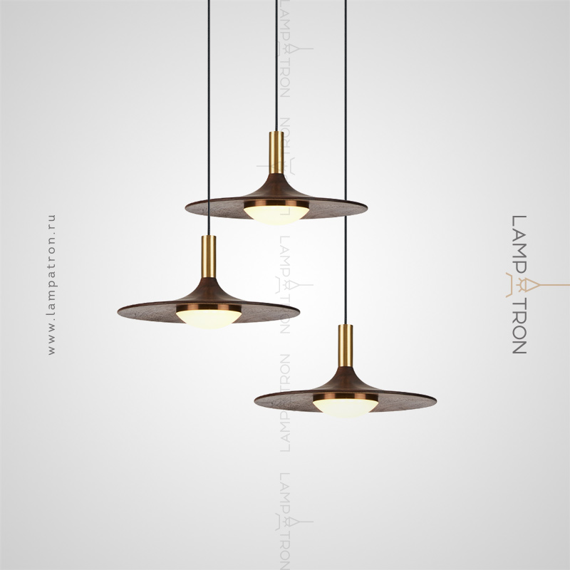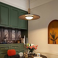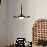 Suspended lamp with a wooden lampshade in the shape of a disk