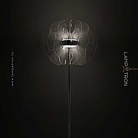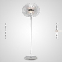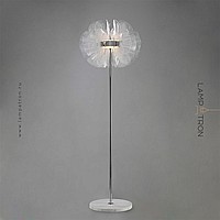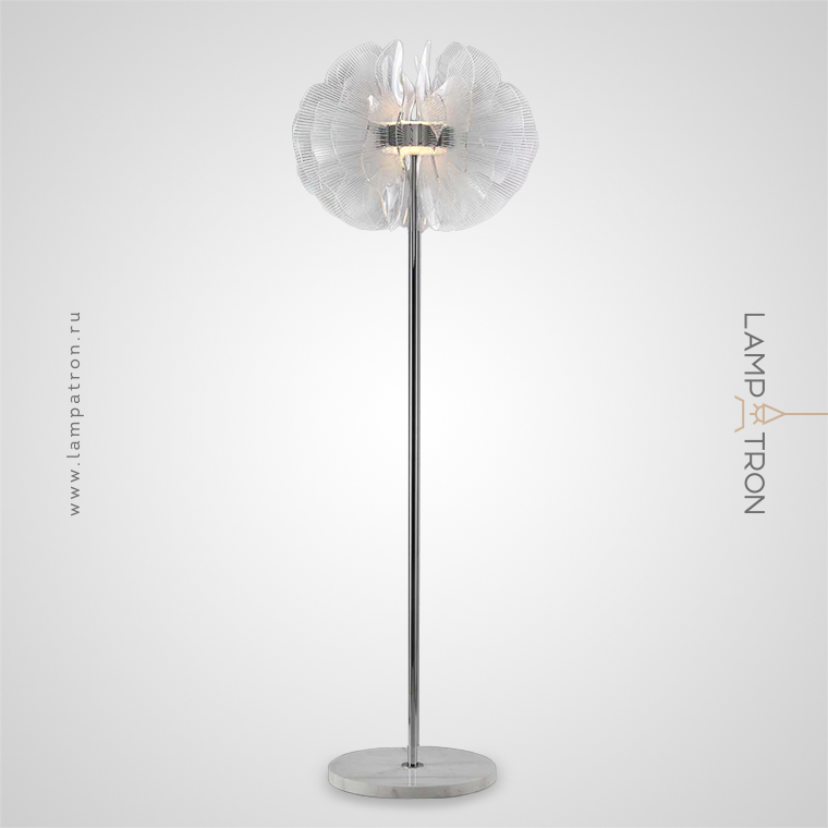LED floor lamp in the form of a stylized flower with transparent acrylic petals
