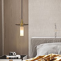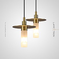 LED pendant luminaire with matte white cylindrical body and disc-shaped diffuser