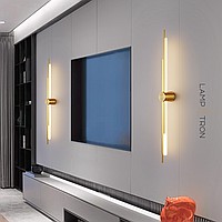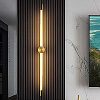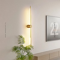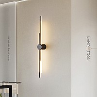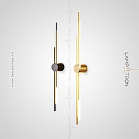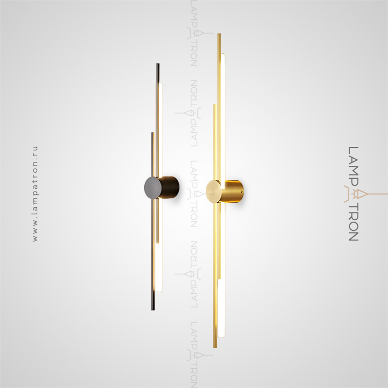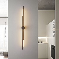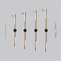 A series of LED wall lights with rectangular luminous rods on a circular mount