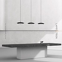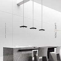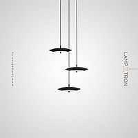 LED pendant light with black disc shade and dimmable