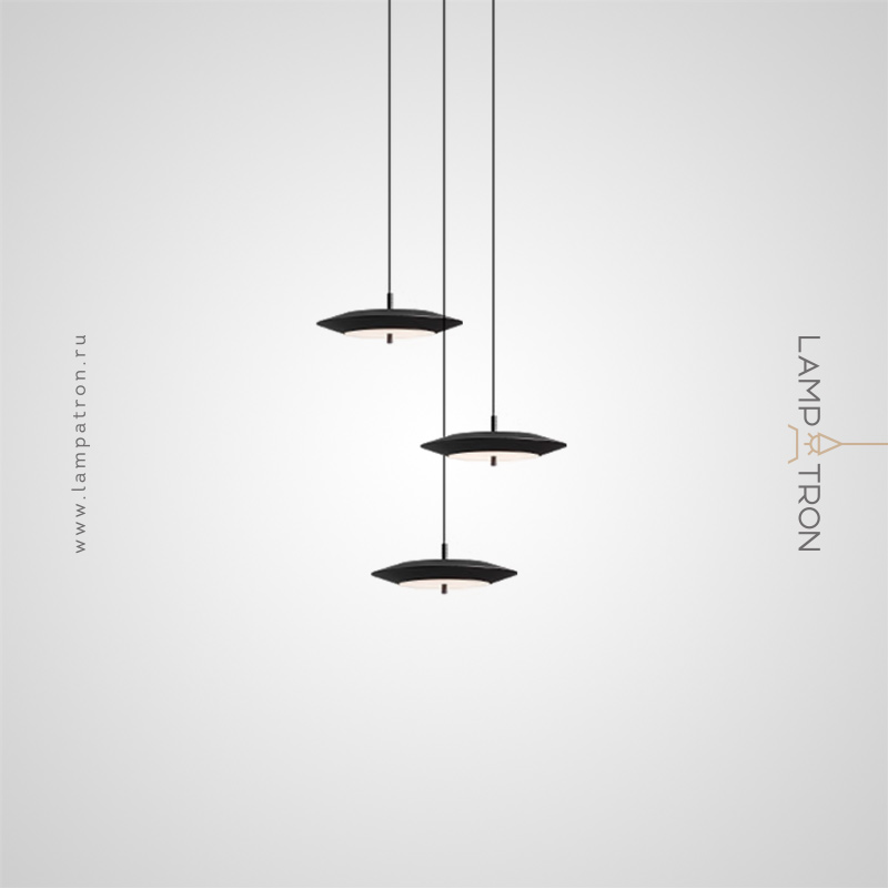 LED pendant light with black disc shade and dimmable