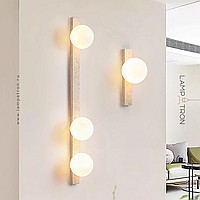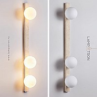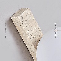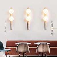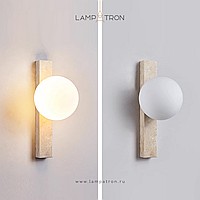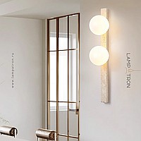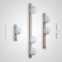 TITUS series of wall lamps with a linear body made of natural travertine with a combination of spherical shades