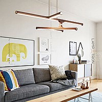 Line of lamps on a wooden frame with LED lighting source