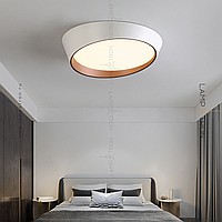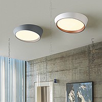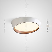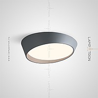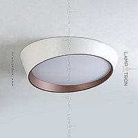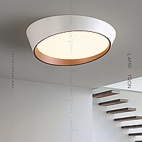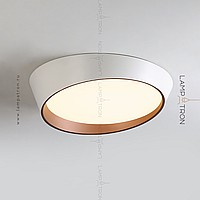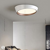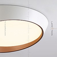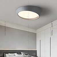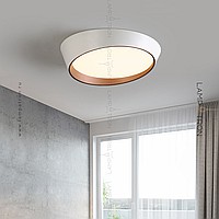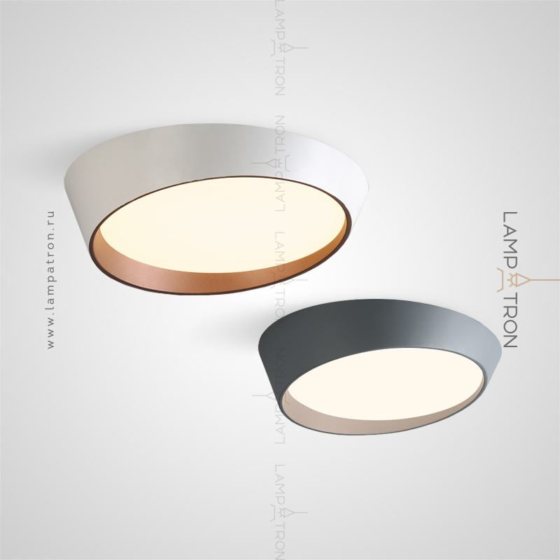 A series of ceiling LED lamps with a round LED panel in a metal case in the form of a truncated cone