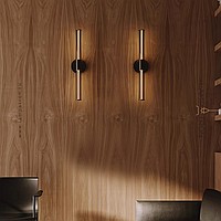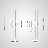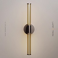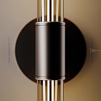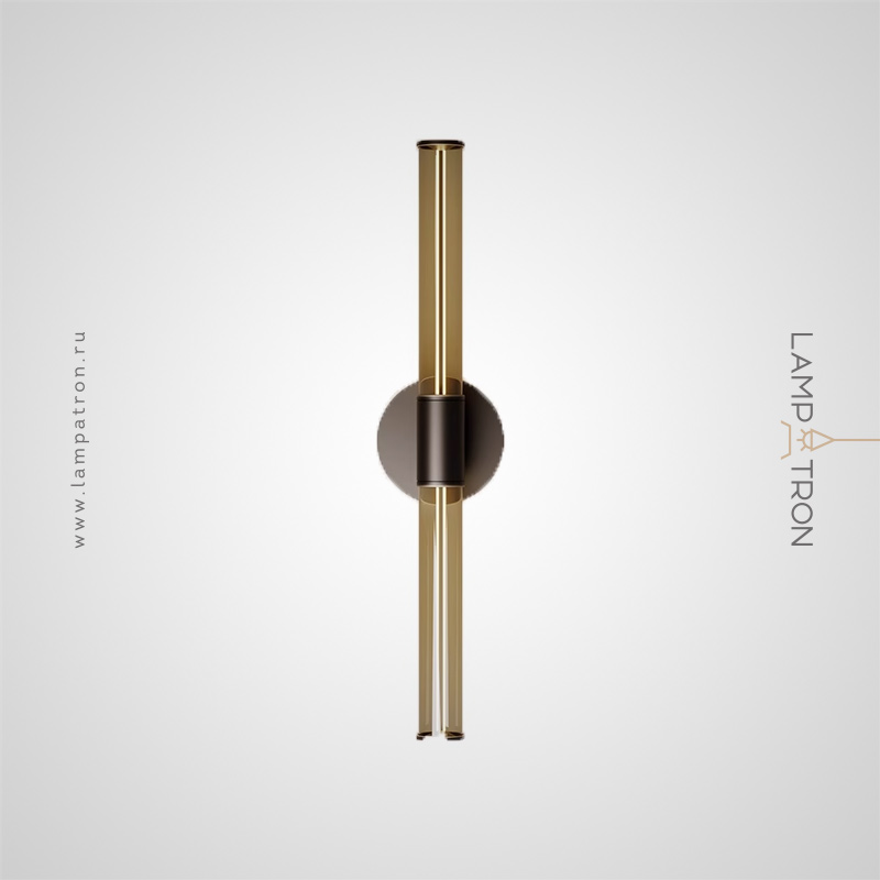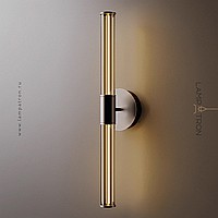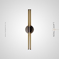 Wall lamp made of elongated cylindrical body made of glass and brass