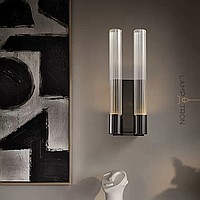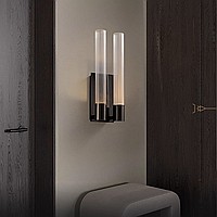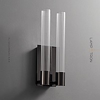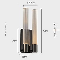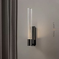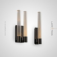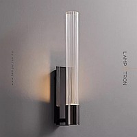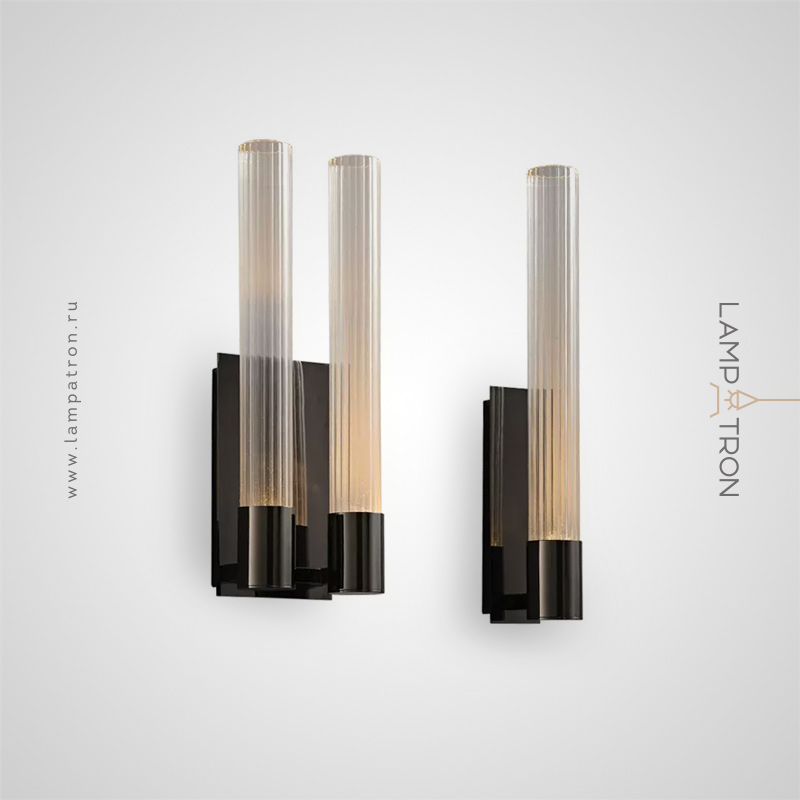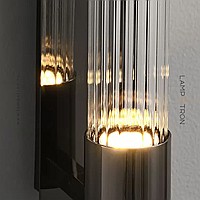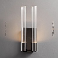 A series of wall lamps with vertical cylindrical shades made of embossed glass with an LED source