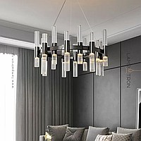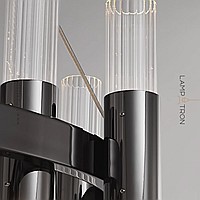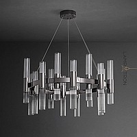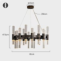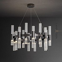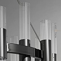 Pendant LED chandelier with vertical cylindrical shades made of embossed glass on a ring frame