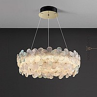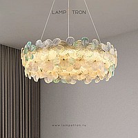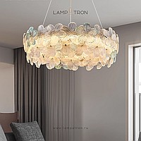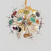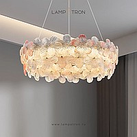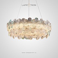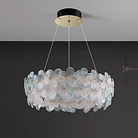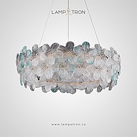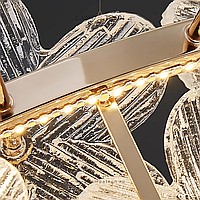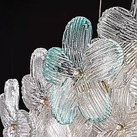 LED chandelier with floral décor made of clear and painted glass on a ring frame