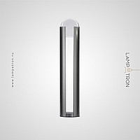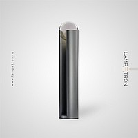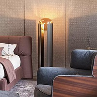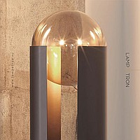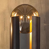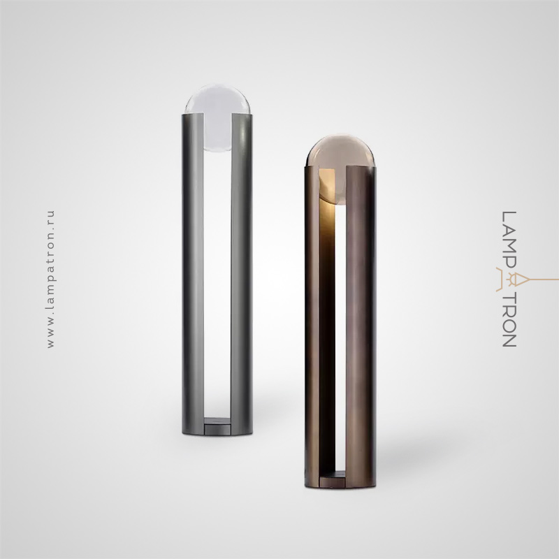 Floor lamp in the form of a pole with a slot and an internal light source directed at a spherical glass lens
