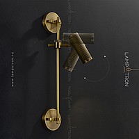 A series of wall lamps for one and two lamps with cylindrical corrugated lamps on a vertical bracket