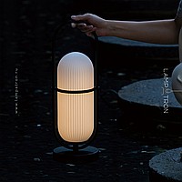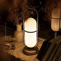 A series of table lamps with a relief cylindrical body made of glass in a metal frame