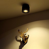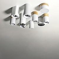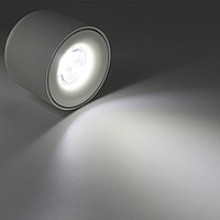 A spare overhead lamp in a minimalist design with an LED and lenses built into the housing. The surface of the case is matte, in white, gray and black. It is produced with a capacity of 7 or 9 watts with a warm shade or natural white, for your choice.