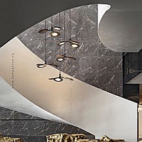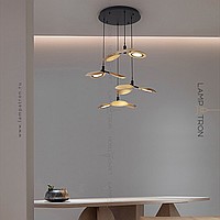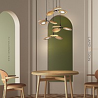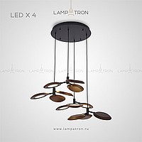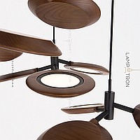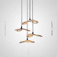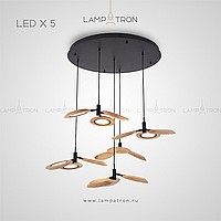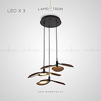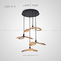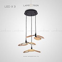 Ready -made combination of suspended lamps with three wooden ceiling in the form of blades