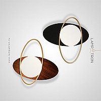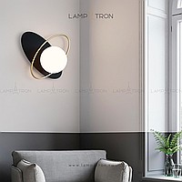 A wall -shaped wall lamp with a spherical glass plafon inside a metal ellipse