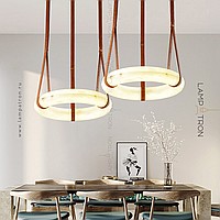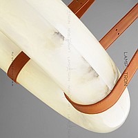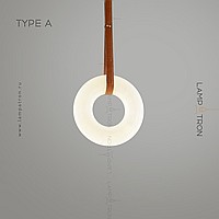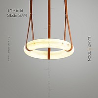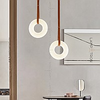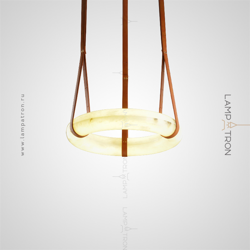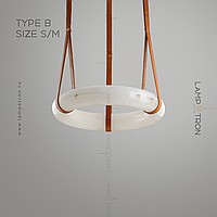A series of suspended LED lamps with a spanish marble ring on leather straps