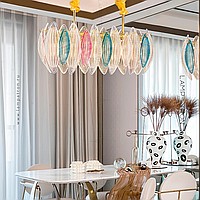 Spear lamp with a glass of glass leaf -shaped plates of different colors