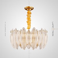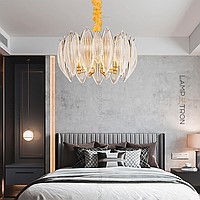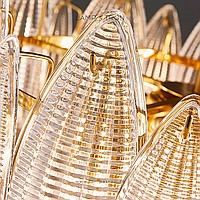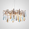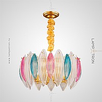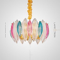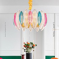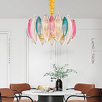 A chandelier with a glass of glass leaf -shaped plates of different colors