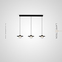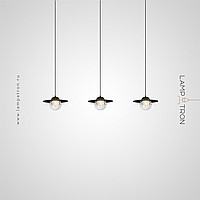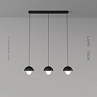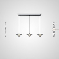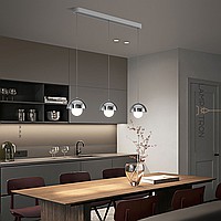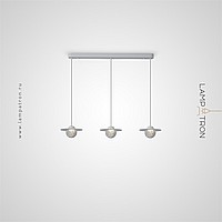 Ready-made combination of LED pendant luminaires with spherical shades and disc-shaped diffusers