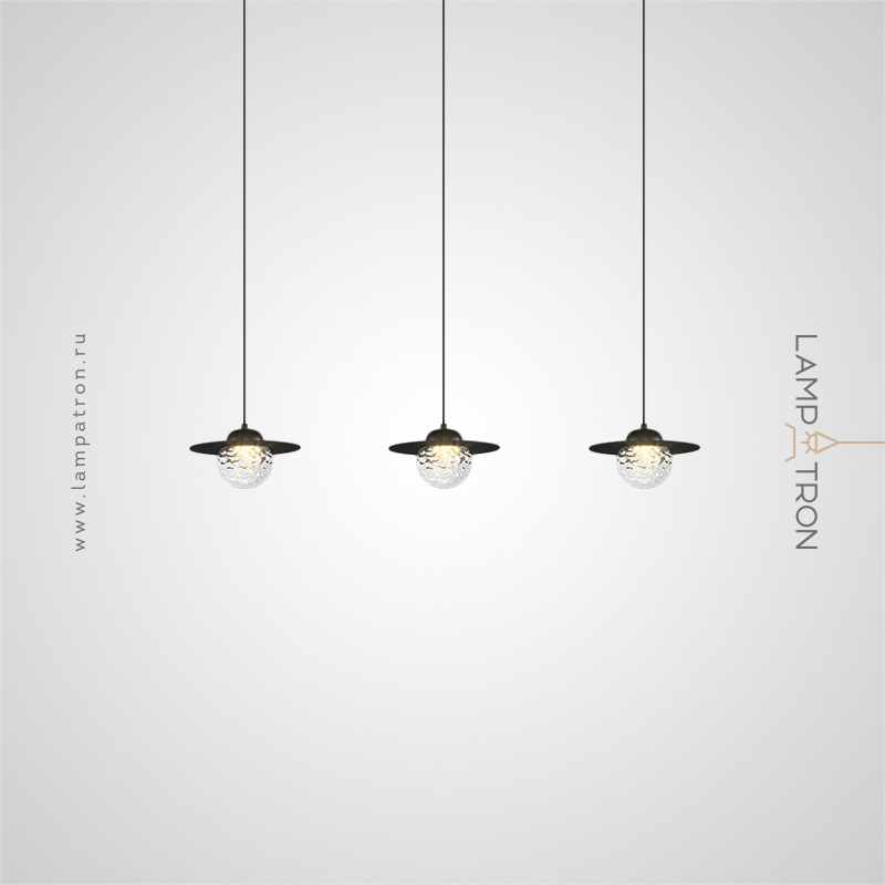 Ready-made combination of LED pendant luminaires with spherical shades and disc-shaped diffusers
