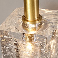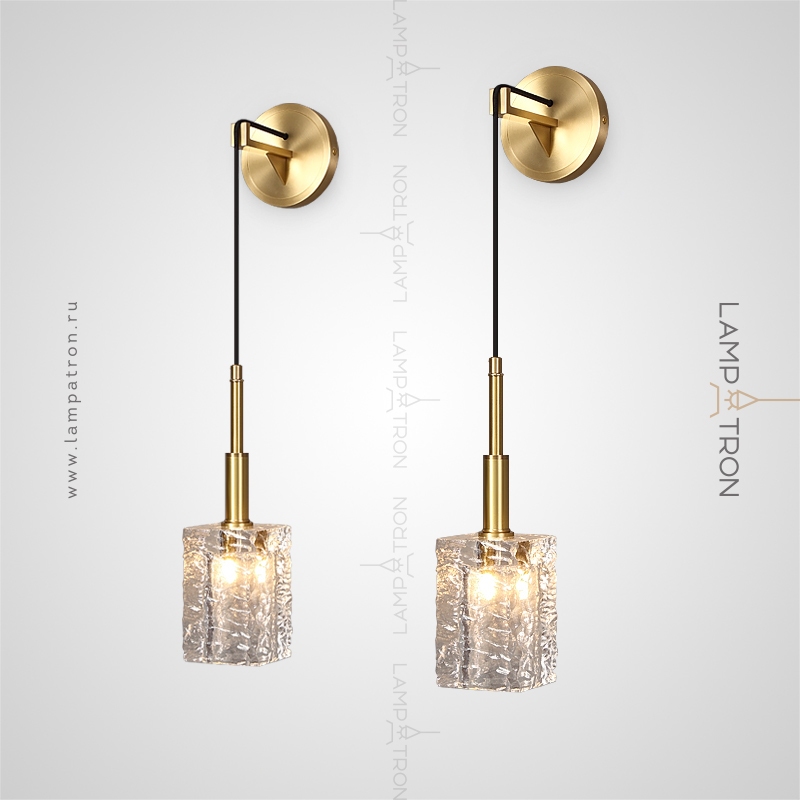 Wall lamp with a suspended plafon in the form of a rectangular -shaped embossed glass ingot