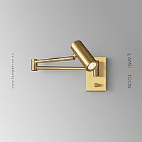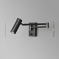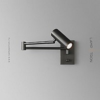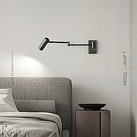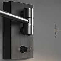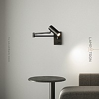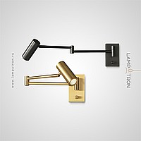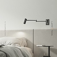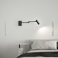 A series of LED wall lamps with a swivel cylindrical spot on an articulated bracket