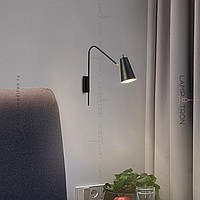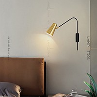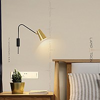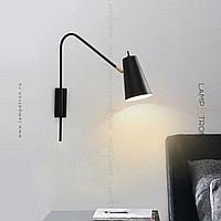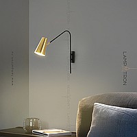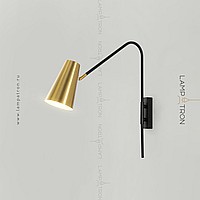 A series of wall lamps with a rotary lampshade of conical shape on the corner bracket