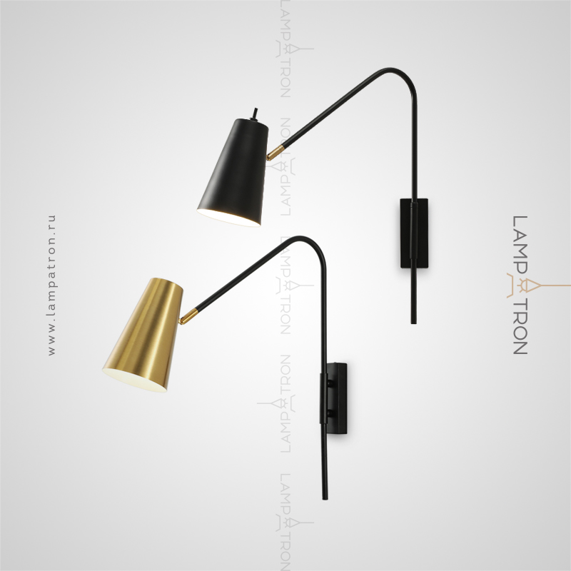 A series of wall lamps with a rotary lampshade of conical shape on the corner bracket