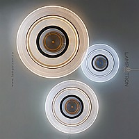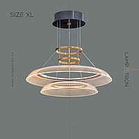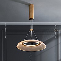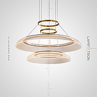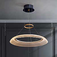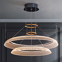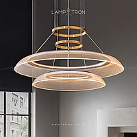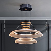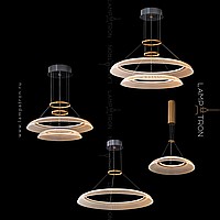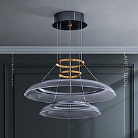 A series of ring LED chandeliers with transparent engraved lampshades of truncated dome shape