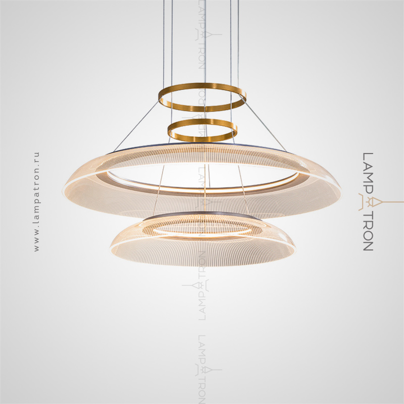 A series of ring LED chandeliers with transparent engraved lampshades of truncated dome shape