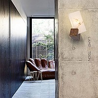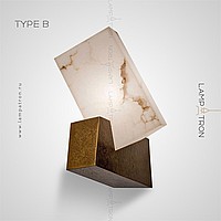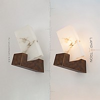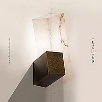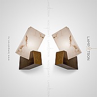 A series of symmetrical sconces with a rectangular shade made of Spanish marble ingot on an embossed base of natural patinated brass