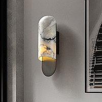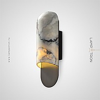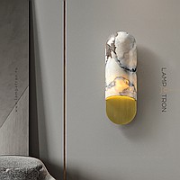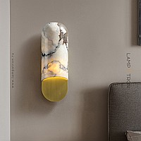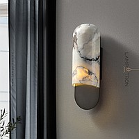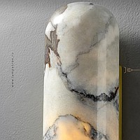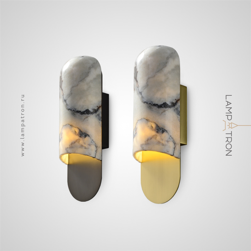 A series of wall lamps with a curved rounded diffuser made of natural marble