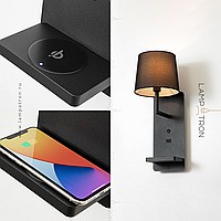 The lamp is equipped with a USB port and a round panel for wireless charging.