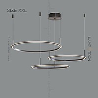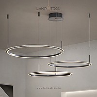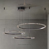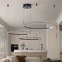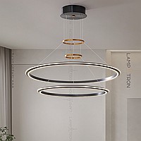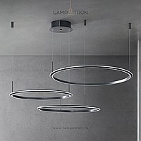 A series of ring LED chandeliers with LED lighting along the contour of the black matte case