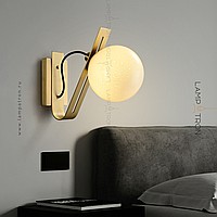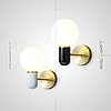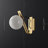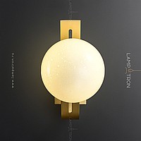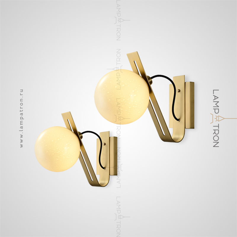 Sconces with a white spherical glass shade with an air bubble effect on an angular bracket