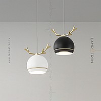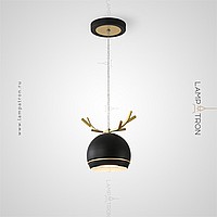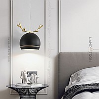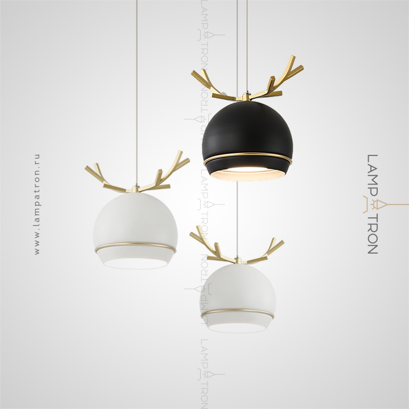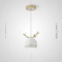 Suspended LED lamp with a matte spherical ceiling and decor in the form of deer ox