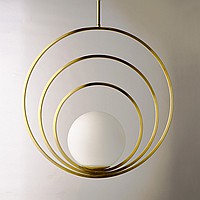 Scandinavian -style pendant lamp with a glass ceiling in a frame of rings