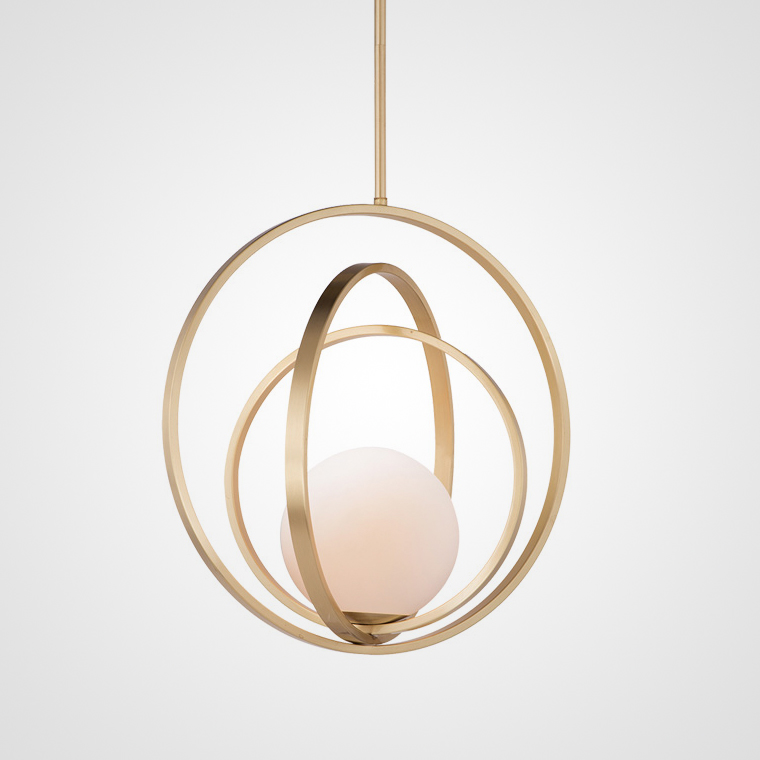 Scandinavian -style pendant lamp with a glass ceiling in a frame of rings