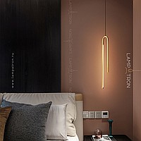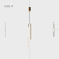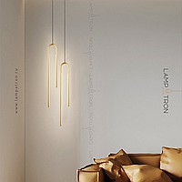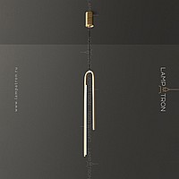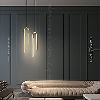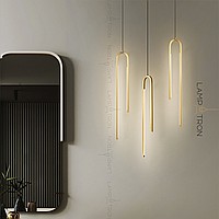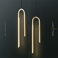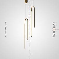 A series of suspended LED lamps with elongated rectangular LED panels on a multi-level arched case