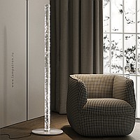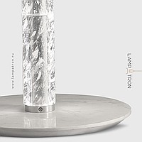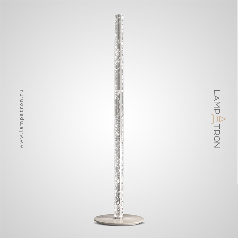 LED floor lamp with cylindrical crystal glass shade with pattern on marble base