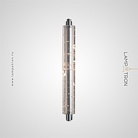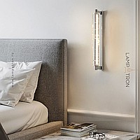 A series of wall lamps with cylindrical crystal glass shades with a pattern