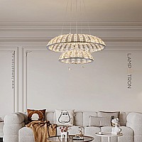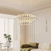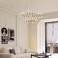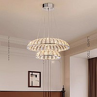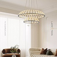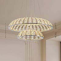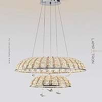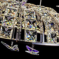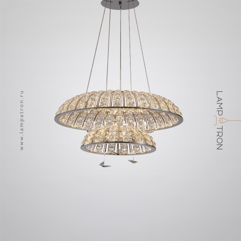 LED ring chandeliers series with two dome-shaped shades made of square crystal dies with decorative pendants in the form of butterflies
