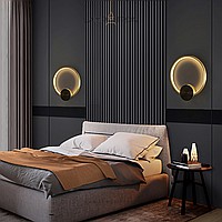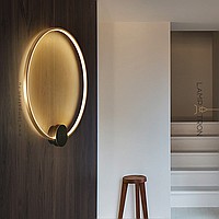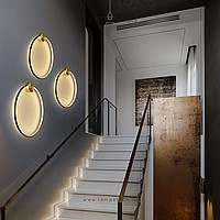 A series of LED wall lamps with a ring body made of natural and blackened brass