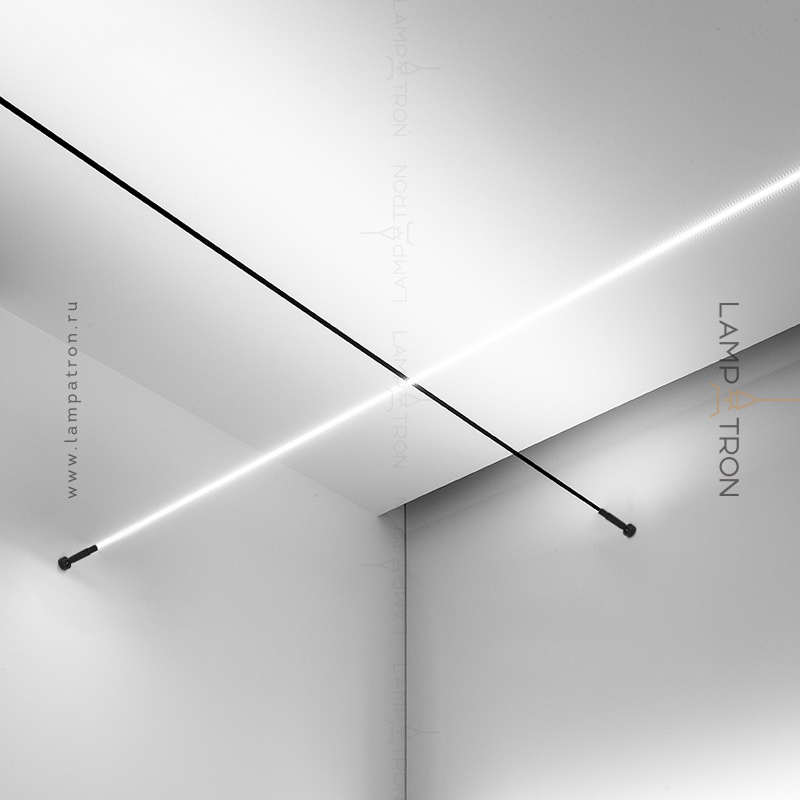 The system is a tension ribbon line with a built-in LED strip that stretches between two fasteners.