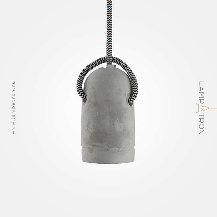 An original suspension with a cartridge made of microporous concrete and a characteristic knot of a suspended wire. Complex: cartridge, wire, ceiling cap, set of fasteners. Ideal for interiors in eco-style, Loft style.