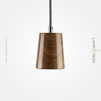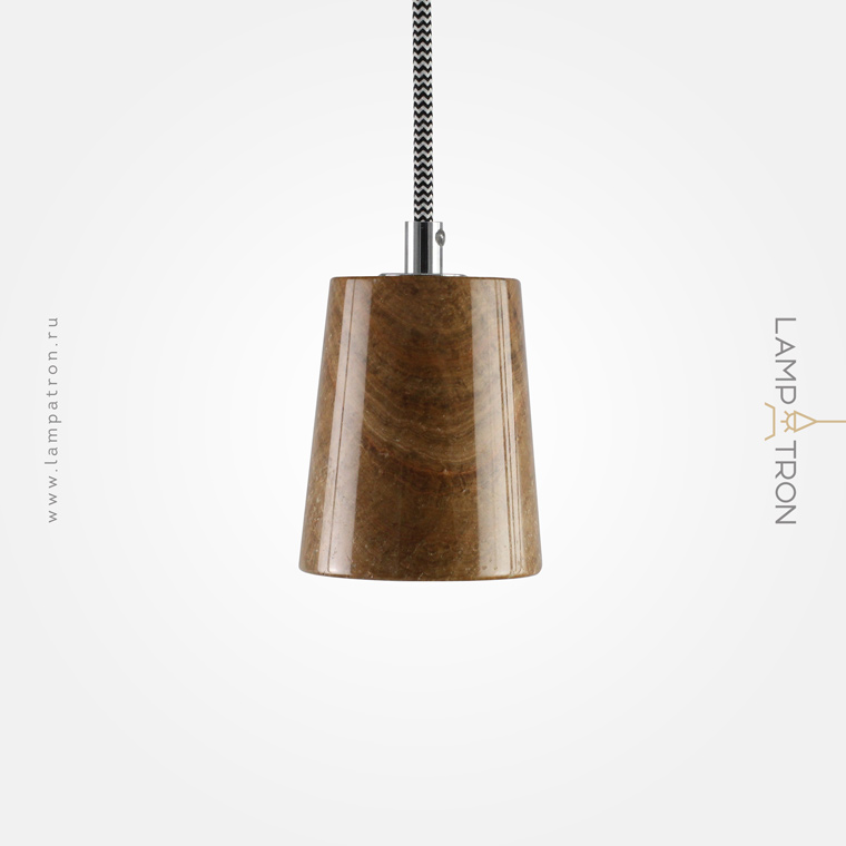 Stylish conical cartridge made of brown marble. Complex: cartridge, wire, ceiling cap, set of fasteners.